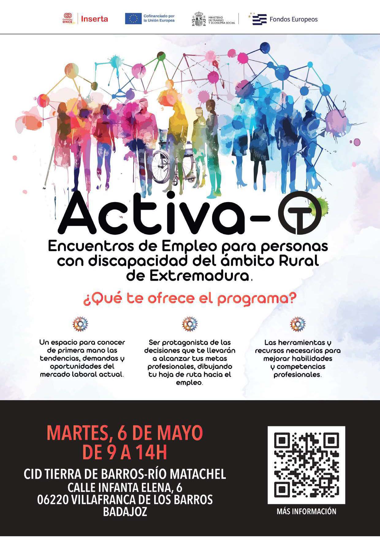 Para asistir a dicho evento es necesario inscribirse en el siguiente enlace:https://activatextremadura.es/#formulario seleccionando Villafranca de los Barros, o bien, a través del código QR que viene en el cartel que adjunto a este email.