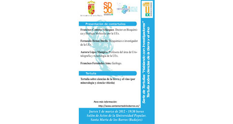 Estas tertulias están organizadas por el Ayuntamiento de Santa Marta, desde la concejalía de Medio Ambiente, con la colaboración del Servicio de Difusión de la Cultura Científica de la Universidad de Extremadura.