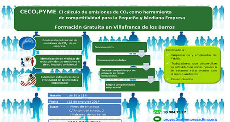 Destinado a empresarios y empleados de PYMEs, trabajadores que desarrollan su actividad en zonas rural o en sectores relacionados con el medio ambiente y desempleados, el curso tendrá lugar el próximo 23 de enero en el Vivero de Empresas situado en la C/ Antonio Machado 2 de Villafranca de los Barros con horario de 16 a 21 horas.